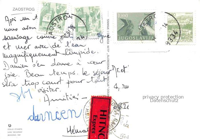 74088415 old postcard Zaostrog Serbija Kuestenpanorama postalisch gelaufen Erhaltung siehe scans [FriedD77] KatCode: 11480