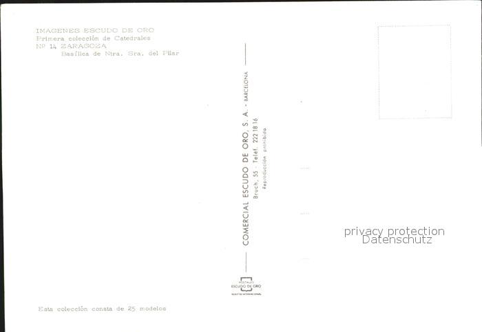 Zaragoza Saragossa Espana Basilica de Nuestra Senora del Pilar Imagenes Escudo de Oro Primera coleccion de Catedrales postalisch nicht gelaufen Erhaltung siehe scans