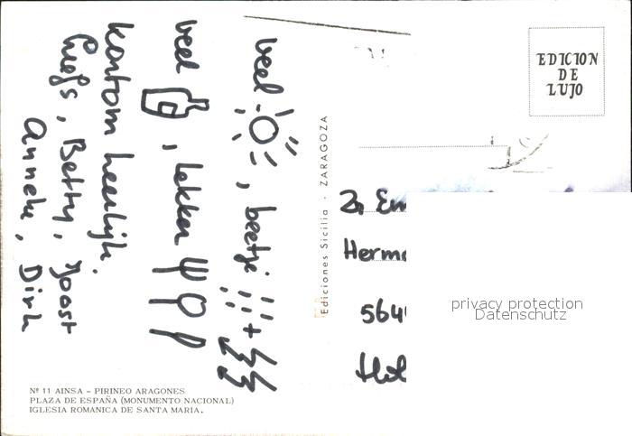 old postcard Zaragoza Saragossa Espana Plaza de Espana Iglesia romanica de Santa Maria postalisch gelaufen Erhaltung siehe scans