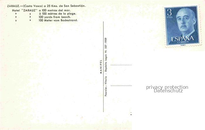 74152170 Zarauz Zarautz Gipuzkoa ES Hotel Zarauz postalisch nicht gelaufen Erhaltung siehe scans [WerneD78] KatCode: 11510