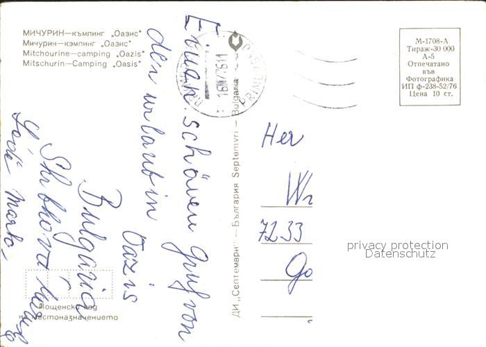 old postcard Zarewo Mitschurin Camping Oasis postalisch gelaufen Erhaltung siehe scans