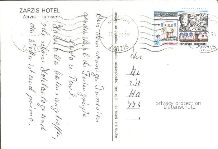 alte Postkarte Zarzis Hotel postalisch gelaufen Erhaltung siehe scans