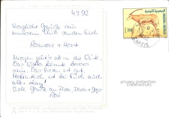 alte Postkarte Zarzis Hotel Cub Sangho postalisch gelaufen Erhaltung siehe scans