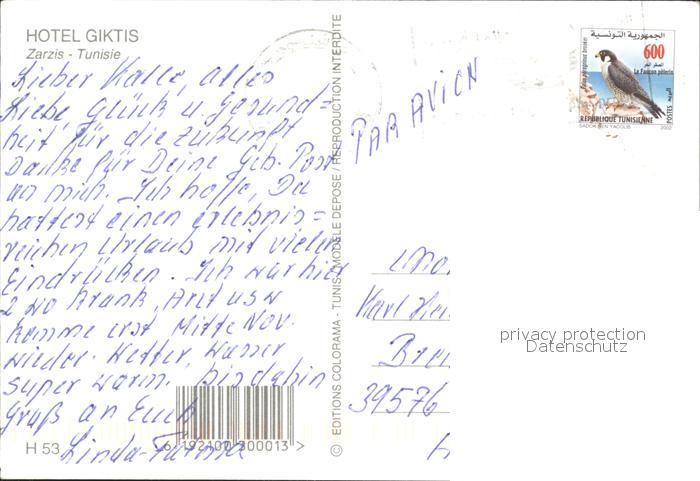 alte Postkarte Zarzis Hotel Giktis postalisch gelaufen Erhaltung siehe scans