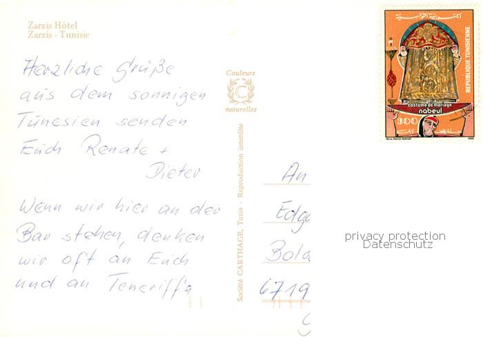 73852273 old postcard Zarzis Tunesie Hotel Bar postalisch gelaufen Erhaltung siehe scans [FriedD77] KatCode: 18520