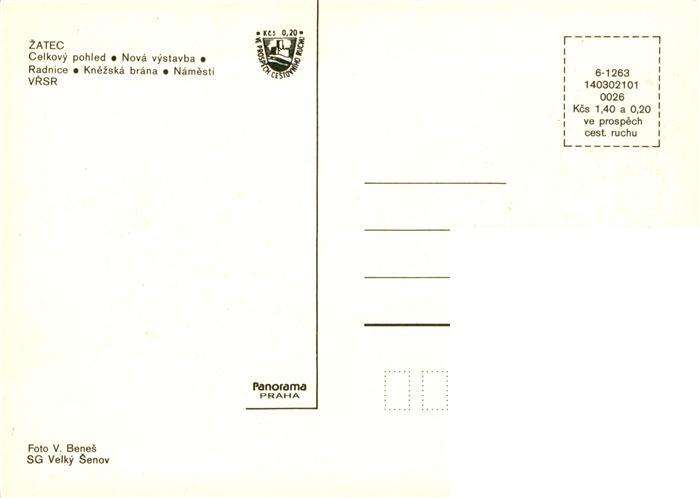 73971196 Zatec Saaz CZ Stadtpanorama Hochhaus Ringplatz Rathaus Priestertor postalisch nicht gelaufen Erhaltung siehe scans [FriedD77] KatCode: 11520