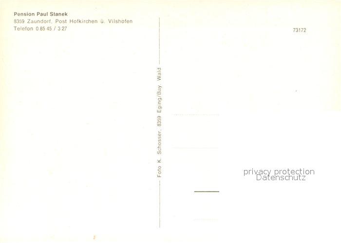 73646360 Zaundorf Vilshofen Niederbayern Pension Paul Stanek postalisch nicht gelaufen Erhaltung siehe scans [WerneD78] KatCode: 11110009275127