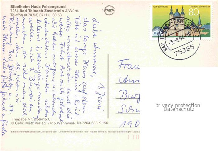 74029501 alte Postkarte Zavelstein Bibelheim Haus Felsengrund postalisch gelaufen Fliegeraufnahme Erhaltung siehe scans [FriedD77] KatCode: 11110008235084