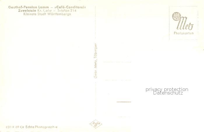 73769133 Zavelstein Gasthof Pension Lamm Cafe Konditorei postalisch nicht gelaufen Erhaltung siehe scans [FriedD77] KatCode: 11110008235084
