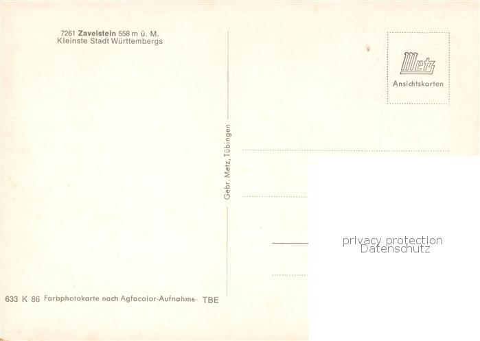 73813629 Zavelstein Kleinste Stadt Wuerttembergs postalisch nicht gelaufen Fliegeraufnahme Erhaltung siehe scans [FriedD77] KatCode: 11110008235084