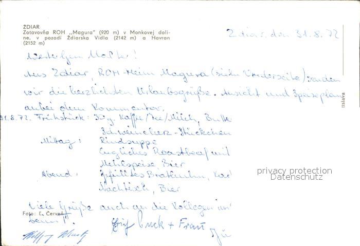 Zdiar Erholungsort postalisch nicht gelaufen Werbekarte (keine Postkarte) Erhaltung siehe scans