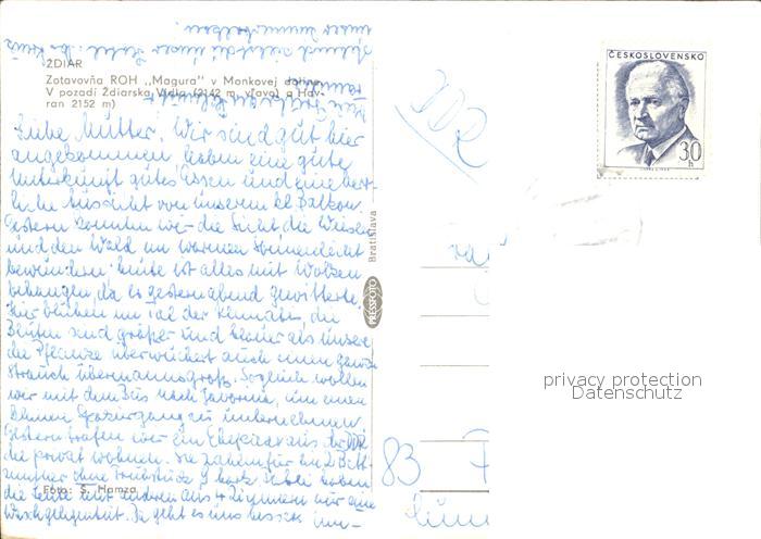 old postcard Zdiar Zotavovna ROH Magura v Monkovej doline postalisch gelaufen Erhaltung siehe scans