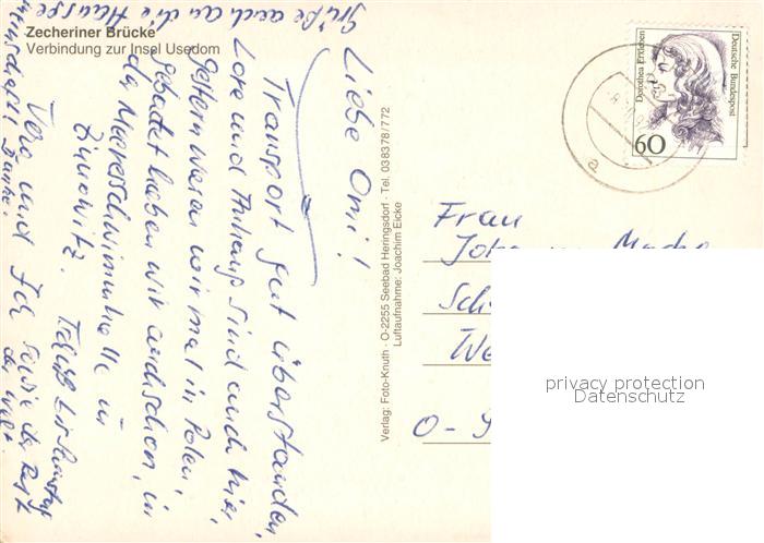 73644795 alte Postkarte Zechin Zecheriner Bruecke Verbindung zur Insel Usedom Fliegeraufnahme postalisch gelaufen Erhaltung siehe scans [WerneD78] KatCode: 11110012064538