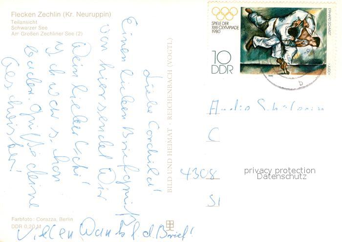 73073399 Zechlin Rheinsberg Ostprignitz-Ruppin Brandenburg Teilansicht Schwarzer See Grosser Zechliner See Badestrand postalisch gelaufen Erhaltung siehe scans [FriedD77] alte Postkarte Frie Katcode 11110012068353