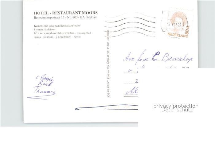 old postcard Zeddam Hotel Restaurant Moors Gastraum postalisch gelaufen Erhaltung siehe scans