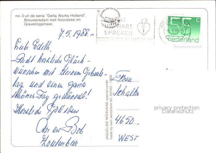 old postcard Zeeland Niederlande Fliegeraufnahme Delta Works Holland postalisch gelaufen Erhaltung siehe scans