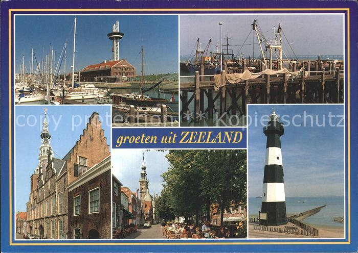 old postcard Zeeland Niederlande Turm Hafen postalisch gelaufen Erhaltung siehe scans