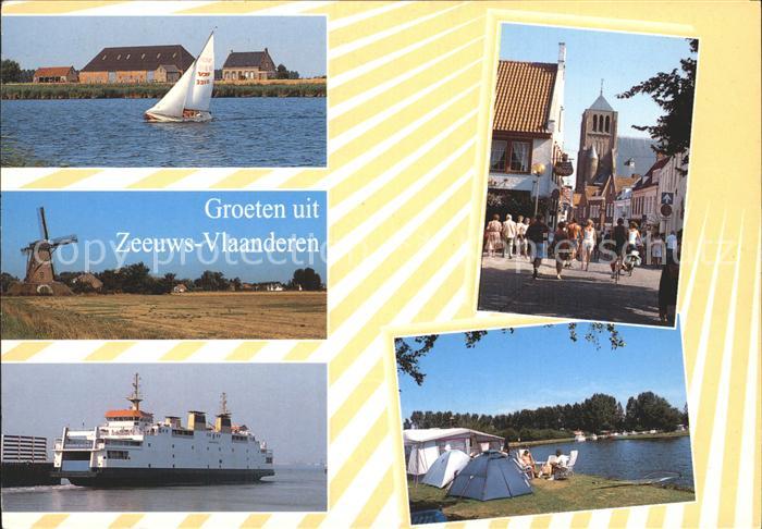 old postcard Zeeuws Vlaanderen Segelboot Zeltplatz Faehre postalisch gelaufen Erhaltung siehe scans