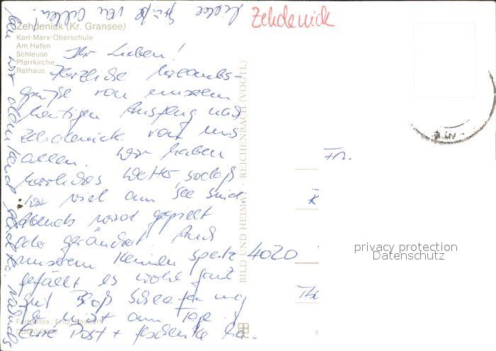 72324072 alte Postkarte Zehdenick Karl Marx Oberschule Hafen Schleuse Pfarrkirche Rathaus postalisch gelaufen Erhaltung siehe scans KatCode: 11110012065356