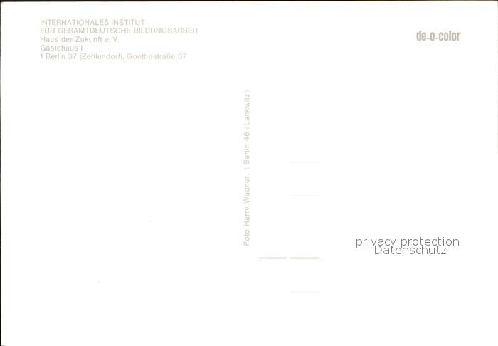 Zehlendorf Berlin Haus der Zukunft Internationales Institut fuer gesamtdeutsche Bildungsarbeit Gaestehaus postalisch nicht gelaufen Erhaltung siehe scans