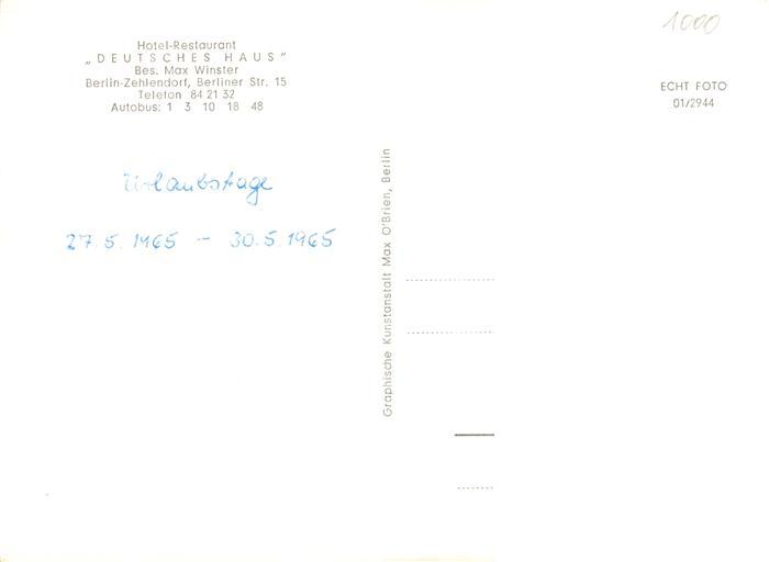 73870727 Zehlendorf Berlin Hotel Restaurant Deutsches Haus Berliner Kindl postalisch nicht gelaufen Erhaltung siehe scans [FriedD77] KatCode: 11110011000000