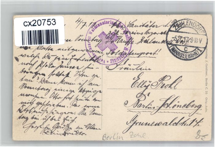 30740487 alte Postkarte Zehlendorf Berlin Sanatorium Dr. Hauffe postalisch gelaufen KatCode: 11110011000000