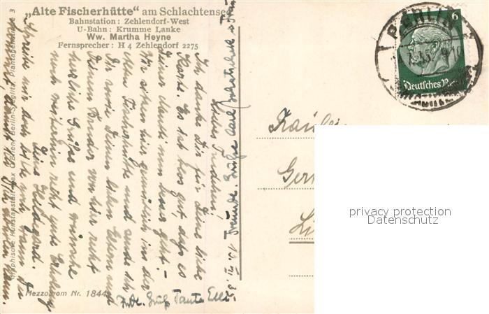 43368049 alte Postkarte Zehlendorf Berlin Uferpromenade nach der Alten Fischerhuette am Schlachtensee Mezzochrom Nr. 1844 postalisch gelaufen Erhaltung siehe scans [FriedD77] KatCode: 11110011000000