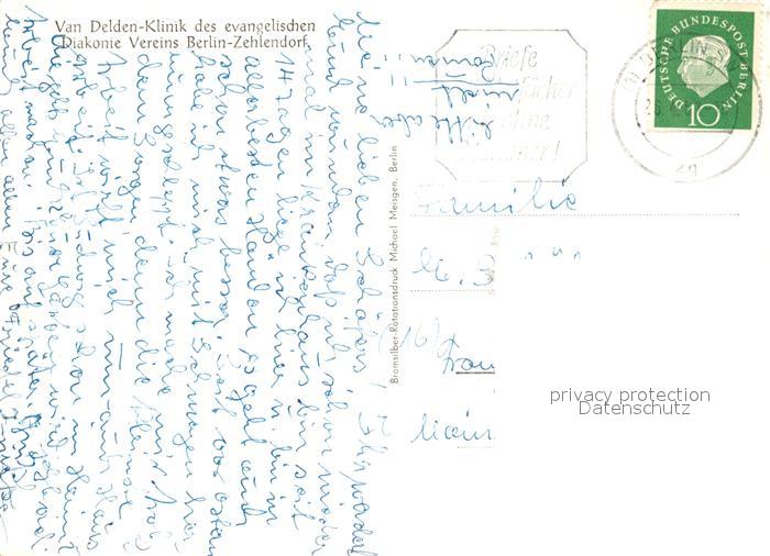 73358248 alte Postkarte Zehlendorf Berlin Van Delden Klinik postalisch gelaufen Erhaltung siehe scans [FriedD77] KatCode: 11110011000000