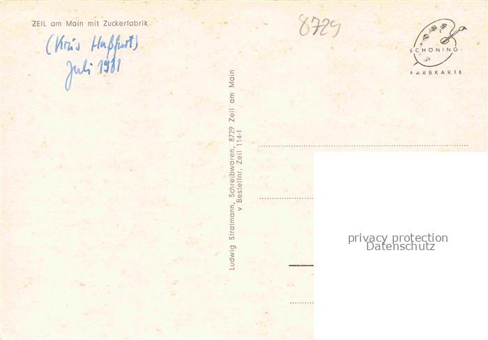74054451 Zeil Main Hassberge Bayern Fliegeraufnahme mit Zuckerfabrik postalisch nicht gelaufen Erhaltung siehe scans [WerneD78] KatCode: 11110009674221