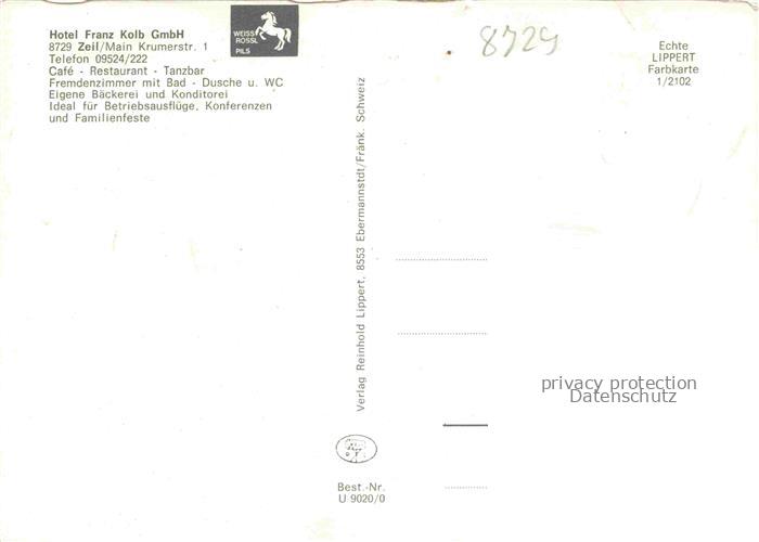 74054950 Zeil Main Hassberge Bayern Hotel Franz Kolb postalisch nicht gelaufen Erhaltung siehe scans [WerneD78] KatCode: 11110009674221