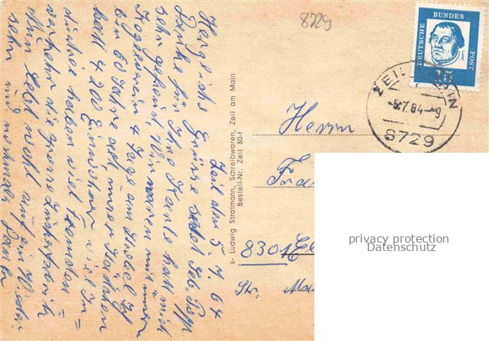 74054965 alte Postkarte Zeil Main Hassberge Bayern Stadtblick Marktplatz Kaeppele Am Stadtsee Altachbruecke postalisch gelaufen Erhaltung siehe scans [WerneD78] KatCode: 11110009674221