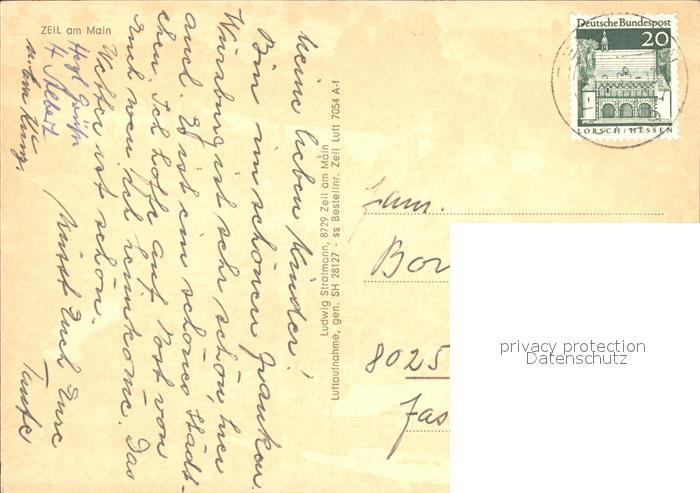 72472666 alte Postkarte Zeil Main Schloss Fliegeraufnahme postalisch gelaufen Erhaltung siehe scans KatCode: 11110009674221