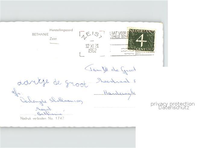 old postcard Zeist Bethanie postalisch gelaufen Erhaltung siehe scans
