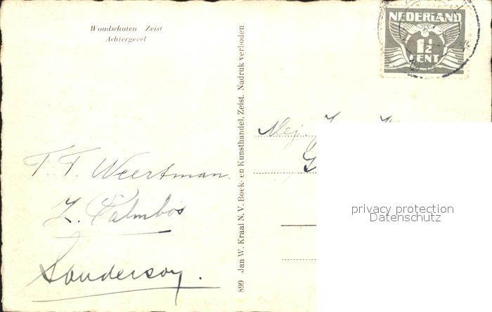 alte Postkarte Zeist Woudschoten Achtergecel postalisch gelaufen