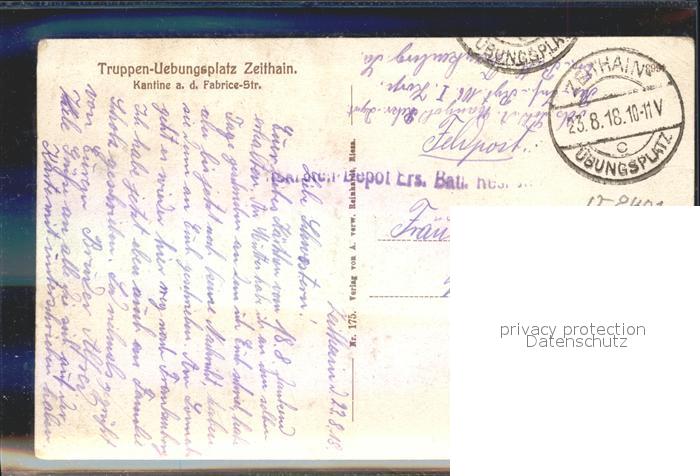 42195868 alte Postkarte Zeithain Kantine Fabrice- Strasse Truppen- uebungsplatz postalisch gelaufen Feldpost Erhaltung siehe scans KatCode: 11110014285420