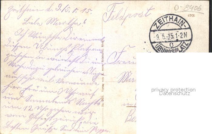 42206115 alte Postkarte Zeithain Truppenuebungsplatz Offizierspark postalisch gelaufen Feldpost Erhaltung siehe scans KatCode: 11110014285420