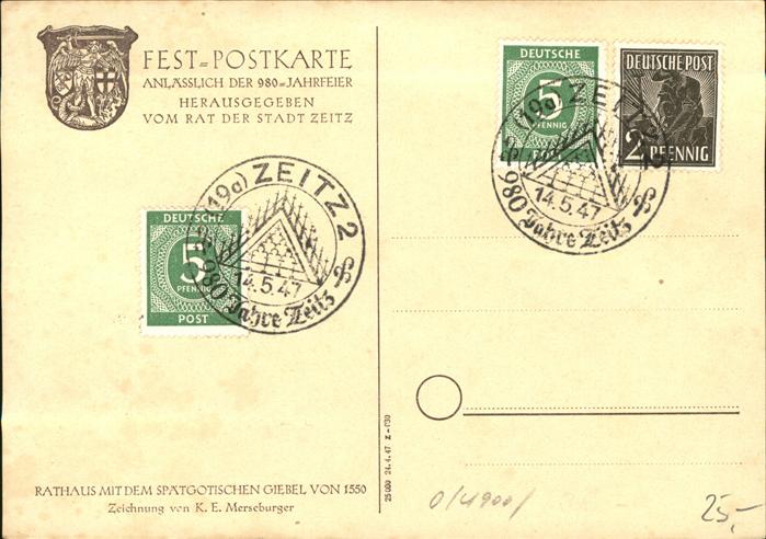 41422459 ZEITZ Sachsen-Anhalt Kuenstlerkarte Rathaus K. E. Merseburger postalisch gelaufen Erhaltung siehe scans Alte Ansichtskarte Postkarte alte Postkarte Stef Katcode 11110015084590