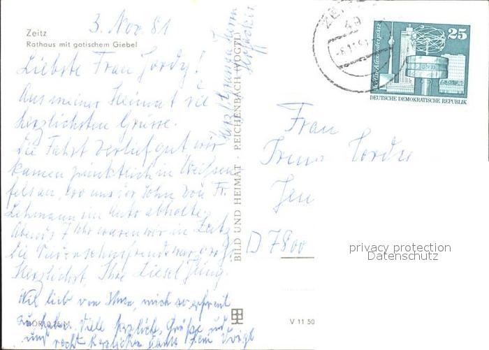72336033 alte Postkarte ZEITZ Sachsen-Anhalt Rathaus mit gotischem Giebel postalisch gelaufen Erhaltung siehe scans KatCode: 11110015084590