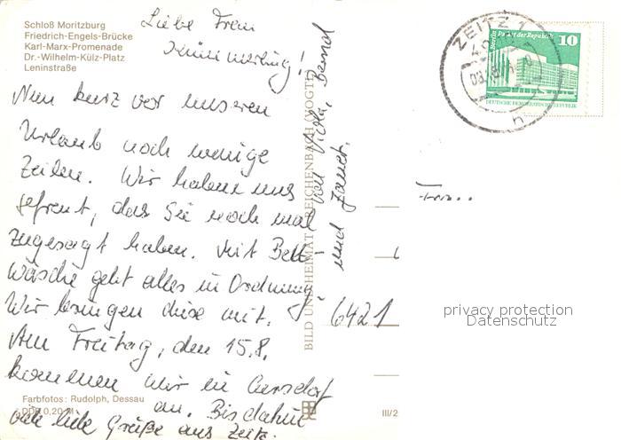 72935197 alte Postkarte ZEITZ Sachsen-Anhalt Schlo? Moritzburg Friedrich Engels-Br?cke Karl-Marx-Promenade Dr. Wilhelm-K?lz-Platz Leninstrasse postalisch gelaufen Erhaltung siehe scans [LiesaD40] KatCode: 11110015084590