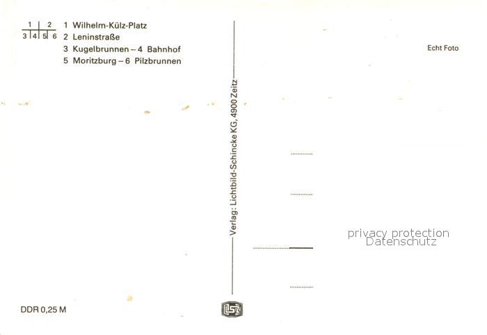 73043717 ZEITZ Sachsen-Anhalt Wilh Kuelz Platz Leninstrasse Kugelbrunnen Bahnhof Moritzburg Pilzbrunnen postalisch nicht gelaufen Erhaltung siehe scans [WerneD78] KatCode: 11110015084590