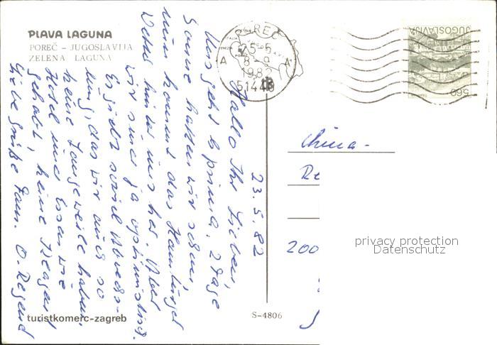 old postcard Zelena Laguna Bucht Tennis Fliegeraufnahme postalisch gelaufen Erhaltung siehe scans