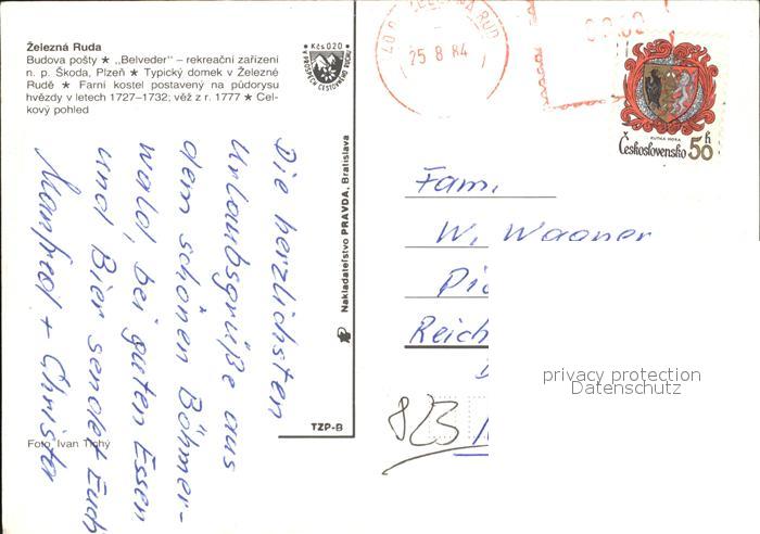 old postcard Zelezna Ruda Markt Eisenstein postalisch gelaufen Erhaltung siehe scans