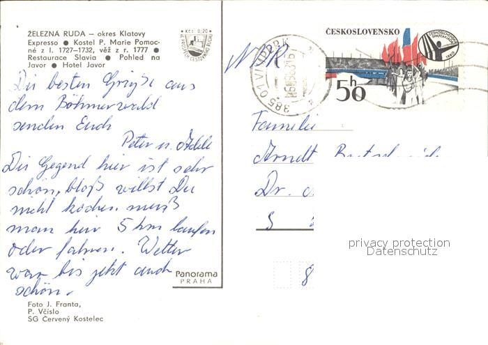 old postcard Zelezna Ruda Markt Eisenstein postalisch gelaufen Erhaltung siehe scans