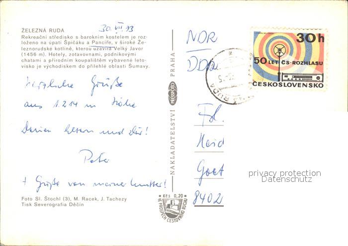 old postcard Zelezna Ruda Markt Eisenstein Kirche postalisch gelaufen Erhaltung siehe scans