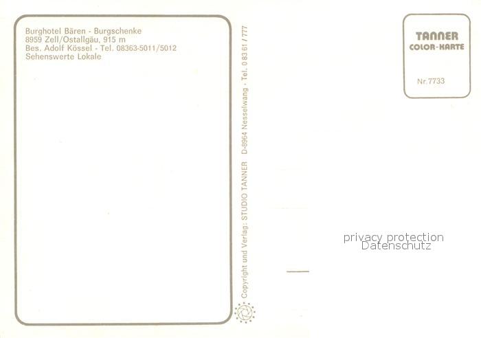 73646355 Zell Allgaeu Burghotel Baeren Burgschenke postalisch nicht gelaufen Erhaltung siehe scans [WerneD78] KatCode: 11110009777125