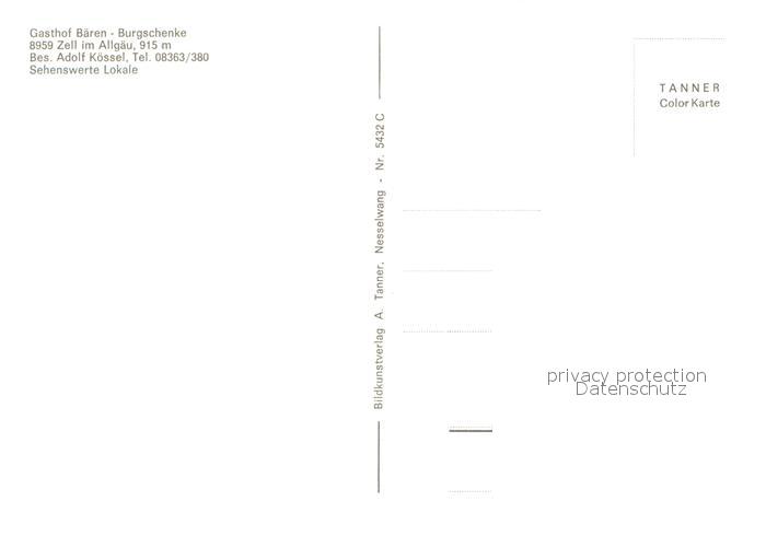 73646356 Zell Allgaeu Gasthof Baeren Burgschenke postalisch nicht gelaufen Erhaltung siehe scans [WerneD78] KatCode: 11110009777125