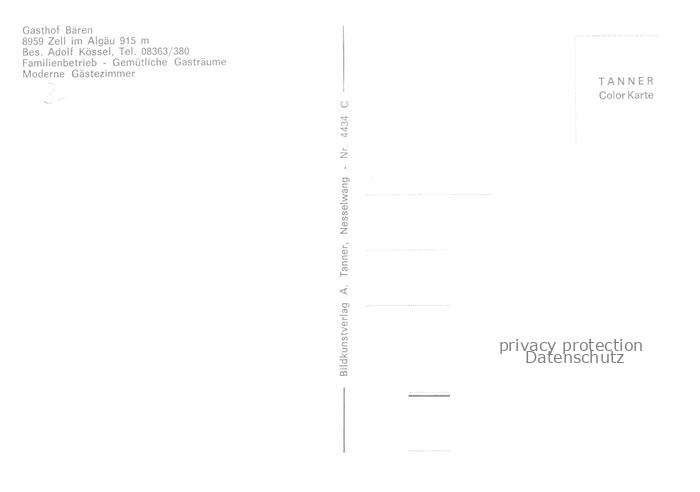 74043206 Zell Allgaeu Gasthof Baeren Gaststube postalisch nicht gelaufen Erhaltung siehe scans [WerneD78] KatCode: 11110009777125