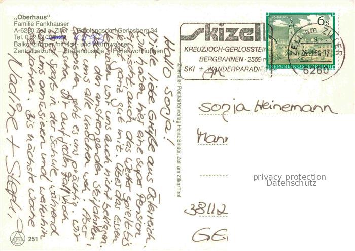 74043668 alte Postkarte Zell am Ziller Tirol AT Gaestehaus Pension Oberhaus postalisch gelaufen Erhaltung siehe scans [FriedD77] KatCode: 11390335070940