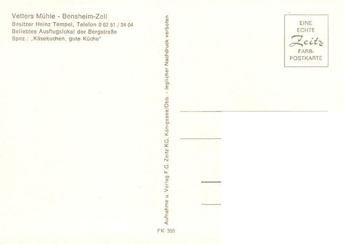 73896387 Zell Bensheim Vetters Muehle Ausflugslokal Terrasse postalisch nicht gelaufen Erhaltung siehe scans [FriedD77] KatCode: 11110006431002