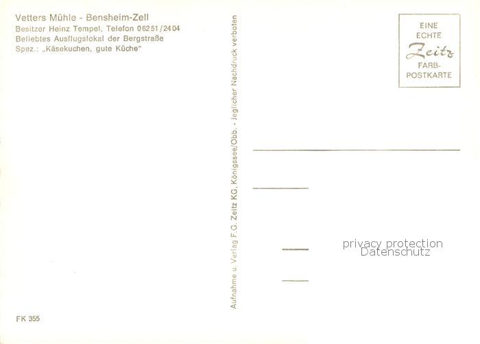 73764948 Zell Bensheim Vetters Muehle Terrassen-Ansicht postalisch nicht gelaufen Erhaltung siehe scans [LiesaD40] KatCode: 11110006431002